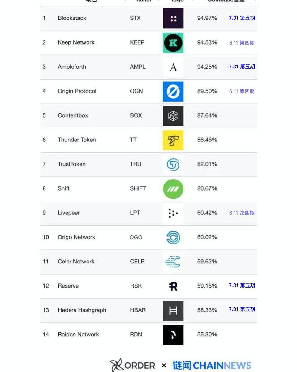 7月31日,Coinbase公布了一轮新的上币评估名单,共19个项目,加上6月11日公布的评估名单,今年已有37个项目被Coinbase纳入考量。
