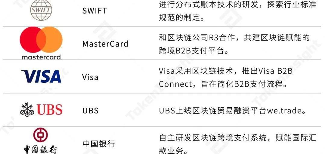 各中心化支付机构对区块链的探索和应用案例,来源:TokenInsight