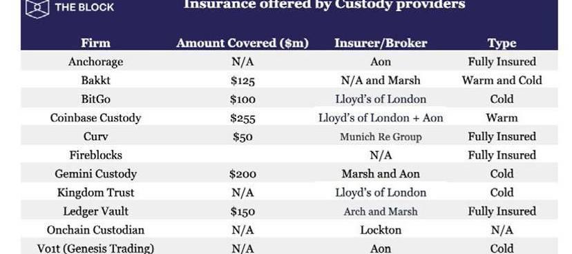 该领域的保险绝非是1:1的担保。除保险金额外,承保情况还取决于资产是离线/在线存储、成本、保险公司的质量以及承保范围的细节。