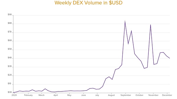 今年年初,去中心化交易所(DEX)的交易量还处于萌芽状态。到夏末,该交易量已经达到了以前只有在中心化交易所才有的水平。几年前,这些交易量似乎不仅不太可能,而且在技术上也不可能。有人认为,有很多理由表明,你无法在链上实现在中心化系统中可能实现的交易量。现在已经被明明白白的证明了,这就是DEX产品与市场契合的证据。