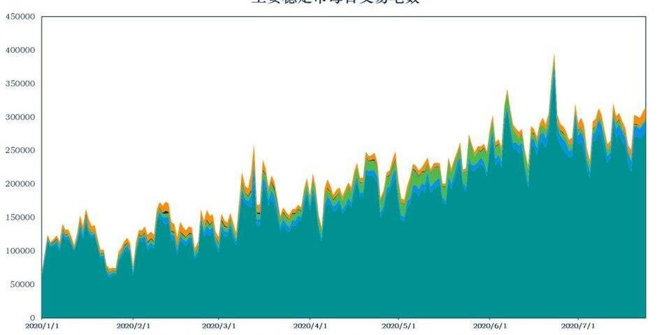 与前一周相比,主要稳定币每日的交易笔数平均上升0.31%。