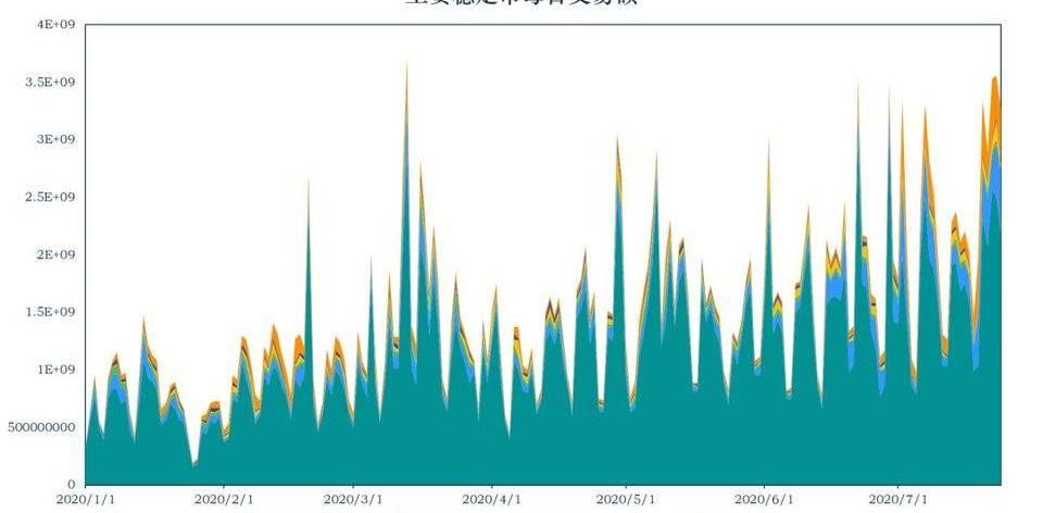 上周,主要稳定币平均每日的交易额较前一周平均上升13.94%。DAI的交易额占比上升,USDT的交易额占比下降。