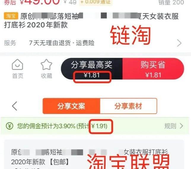 显然,链淘不会把全部佣金给到用户。一本区块链实测发现,一件定价49元的女装,淘宝联盟的佣金设置为1.91元,链淘的佣金是1.81元。其中的0.1元差价,就被链淘赚走了。