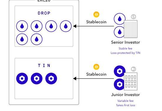 Drop代币类似传统金融投资组合中的高级债券,收益较小,一般是固定的,风险较小;Tin代币类似初级债券,收益虽高,但其首先承担违约风险,并且只有Drop代币全部被赎回时,Tin代币才能获得投资回报,风险更大,可能亏损本金。