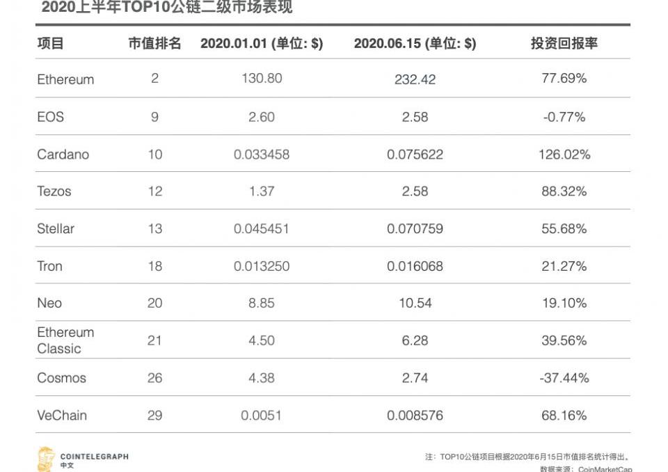 2020上半年,经过寒冬期沉淀的公链项目,在技术革新、安全稳定、商业模式、应用场景上都进行了大幅的提升。Cointelegraph中文从市场表现、技术进展、生态应用、社区活跃度四个维度,复盘2020年全球主流公链的发展。