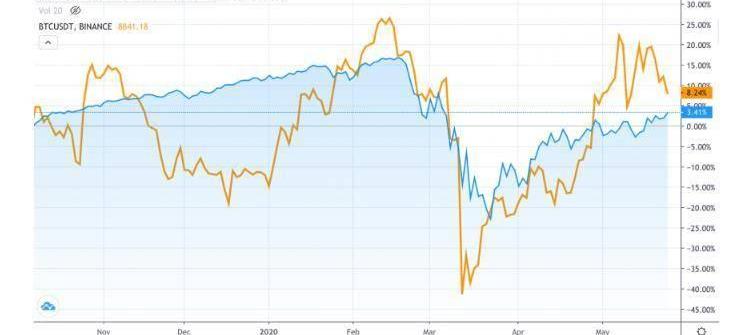 标普500指数和比特币的价格变动情况,来源:Tradingview