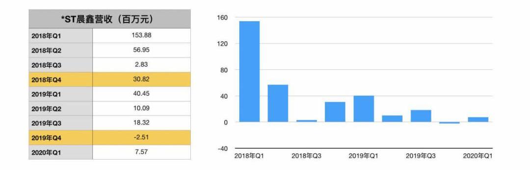 据*ST晨鑫2020年第一季度财报显示,2020年1月至3月期间,*ST晨鑫营收为756.8万元,主要为硬件产品销售额下降所致,且经审计壕鑫互联2018年度及2019年度均未达到业绩承诺。