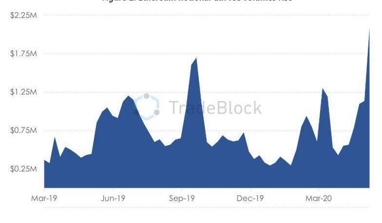 Tradeblock分析称,以太坊网络上交易费用的增加主要是由于稳定币的使用率增加导致的。今年第一季度,稳定币的市值升至历史新高,而大多数稳定币都是ERC-20代币。