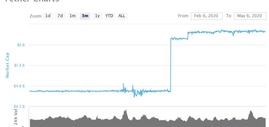 泰特?(Tether)是目前当前加密货币行业的主导稳定币。随着3月12日加密货币价格暴跌之后Tether数量的迅速膨胀,Tether已成为加密货币投资者所寻找的典型“避风港”资产。他们现在5月的总数量是在63.61亿。