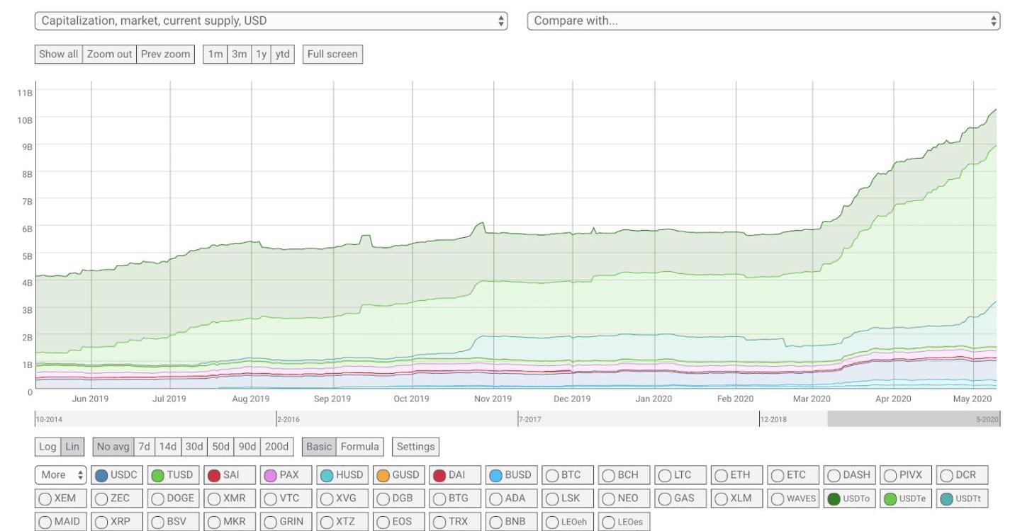 我们首先调查了Tether在以太坊上发行的稳定币。