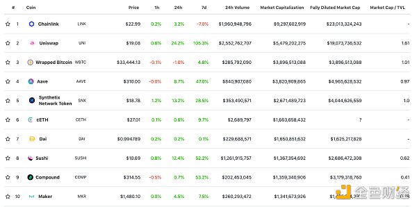 DeFi排名前十锁仓量 数据来源:Debank