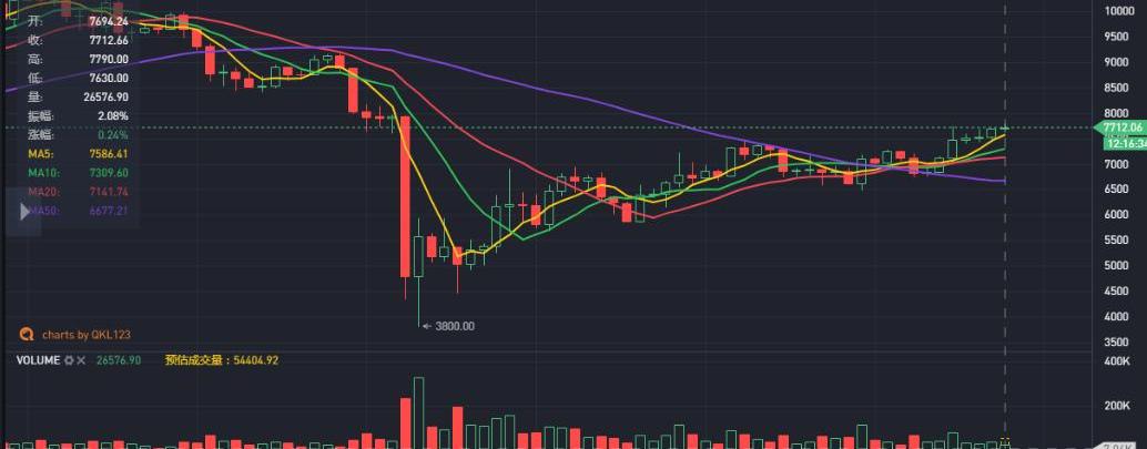 据QKL123行情显示,近期比特币持续走高,今日8时比特币报7790.00美元,创下3月12日以来新高,放量突破后保持高位震荡调整。比特币减半行情是否就此开启呢?
