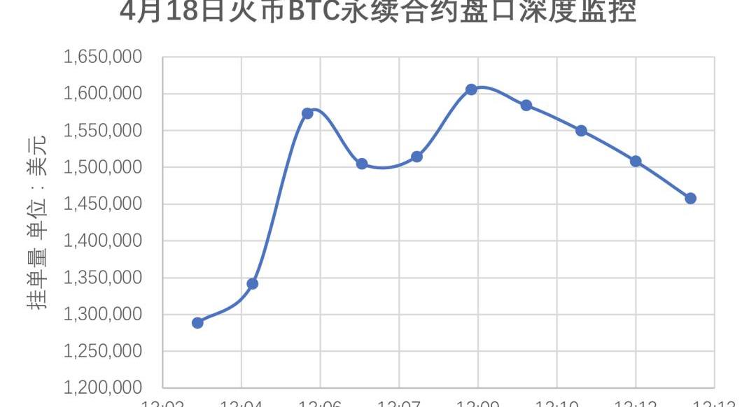 火币合约不仅交易量全球领先,其盘口深度也十分有优势。4月18日13点03分,我们随机监控了火币BTC永续合约10分钟的盘口数据,其市场价0.2%价差以内的挂单量始终维持在130万美金至160万美金区间内,确保用户能以极小的滑点开平仓。