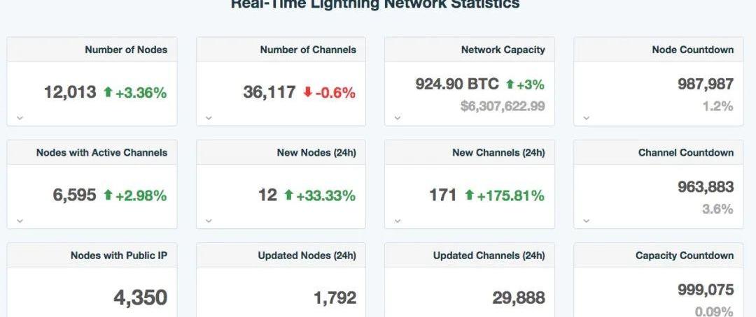 2020年3月,闪电网络全网已拥有12,013个节点、36,117个状态通道、网络容量达到925个比特币。