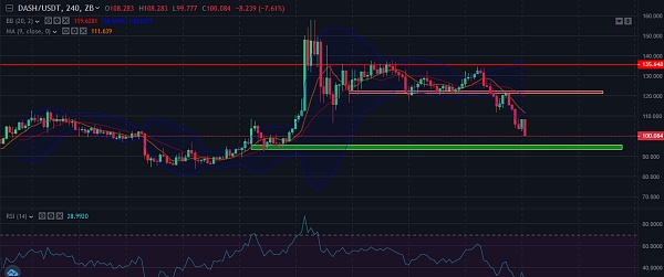 当相对强弱指数(RSI)朝南方向突破114.436美元的支撑位时,空头进一步扩大其力量。DASH跌至99.614美元的新低。