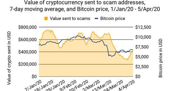 虽然断议称这些不法分子利用Covid-19攫取不到利益也并不合适,但数据显示自3月初新冠疫情加剧以来,者收到的数字货币总体比之前少得多。为什么会这样?因为任何由庞氏局和其他类型的数字货币事件涉及的价值都要比围绕Covid-19而引起的涉及的价值要多。