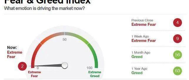 从上图可以看到,整个全球资本市场的情绪指数已经达到2,属于极度恐慌中的极端值。我们也能从连续暴涨的VIX指数中,找到相同的答案。