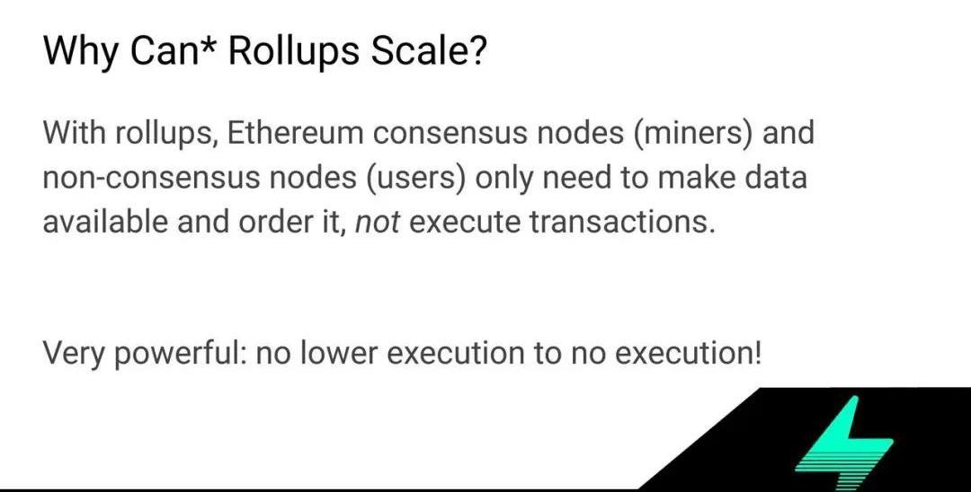 那么,为什么Rollup可以扩展吞吐量呢?因为交易的执行完全放在链下。这一点意义重大,因为显然,这是最大限度解决了交易执行上的瓶颈。