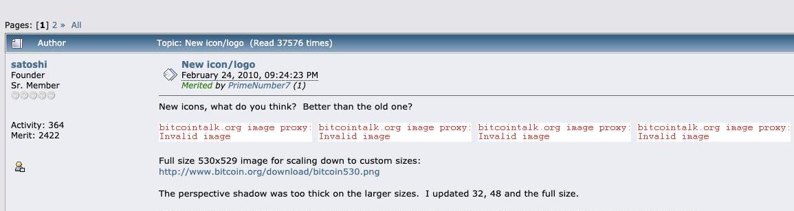 中本聪关于新Logo的帖子,图片来源:Bitcointalk
