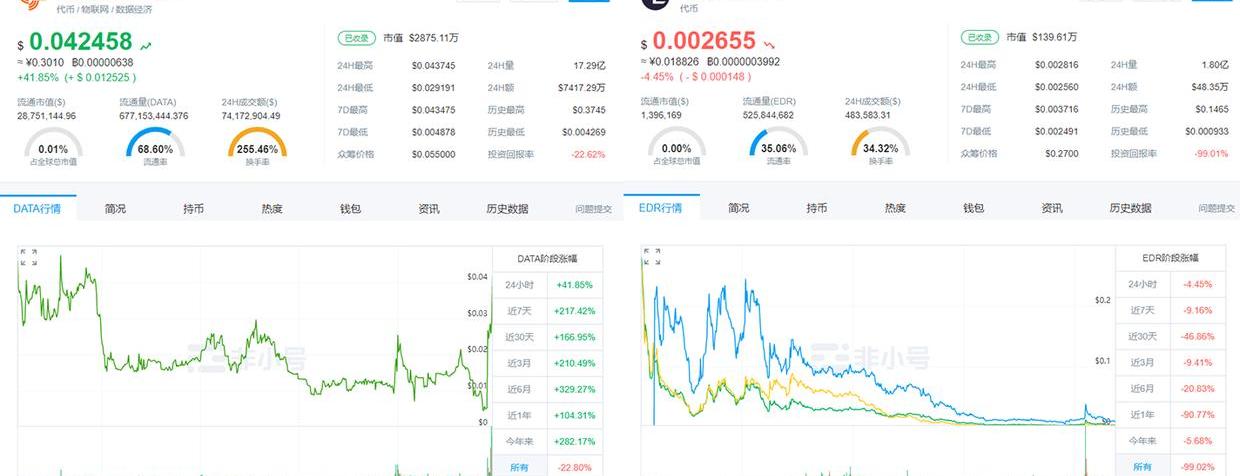 非小号数据显示,Streamr的通证DATA年内有上涨,但总的来看仍下降了22.8%;EndorProtocol的通证EDR更是较发行时下降了99.02%;Coincodex平台数据显示,自从2019年10月起,Fysical的币价就已归零。而这或是因为国外的“区块链+大数据”应用面向的主要是个体和小机构用户,并针对细分场景。小数据主生产的数据价值相对不高,而细分数据领域的需求量也相对有限。