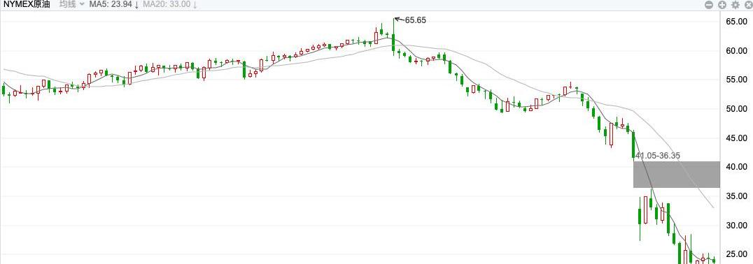 3月9日,价格开盘跌破40美金,随后两周持续杀跌,最低价触及了26.35美金,尽管美股已开始触底反弹,但油价截止今日仍未出现明显的止跌信号。
