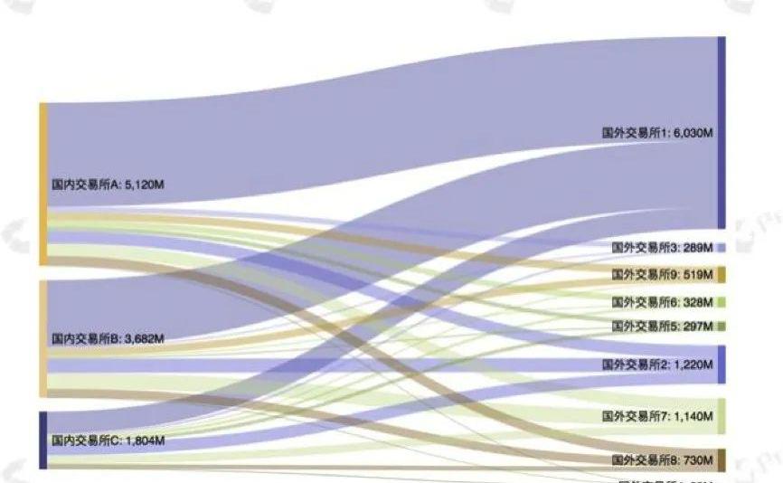 上图是我们统计的从中国向国外各大交易所流出资金总量的情况。