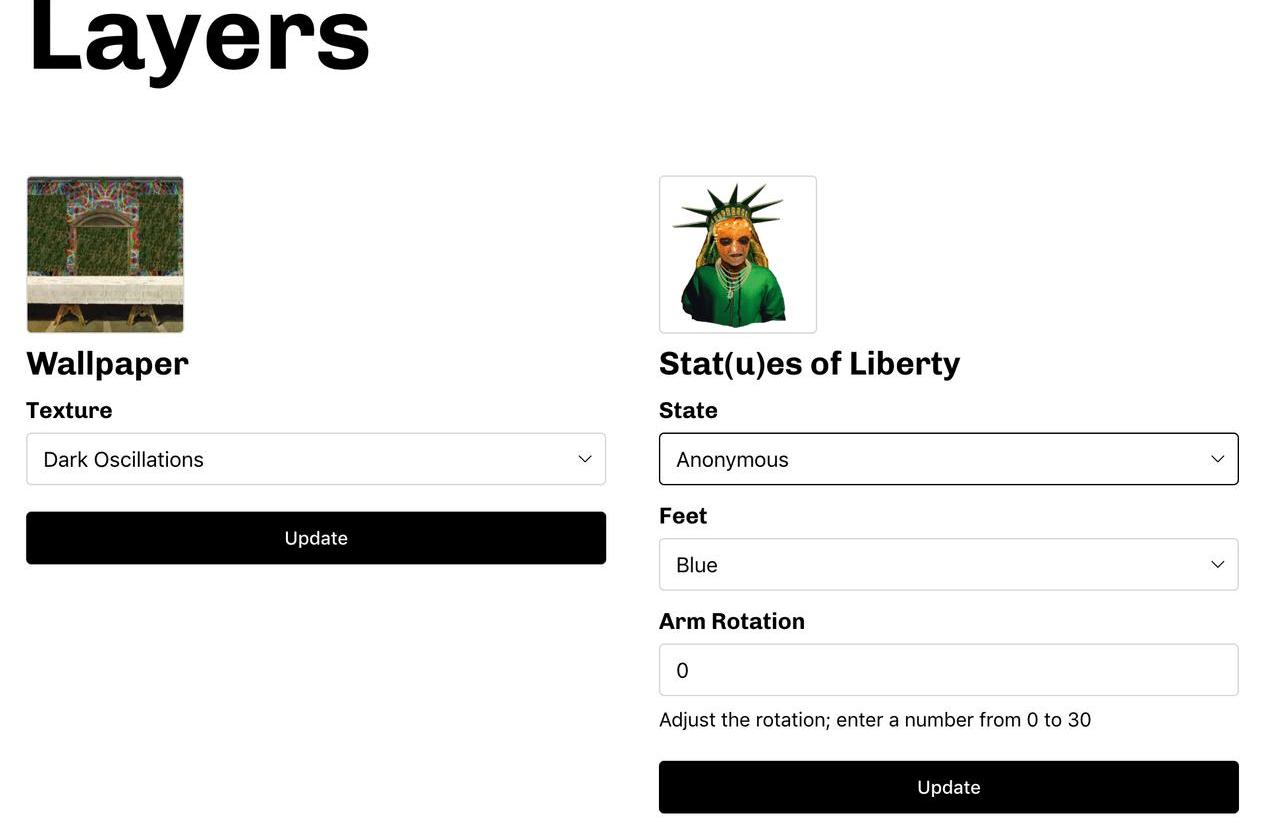 艺术家可以设计艺术品中或大或小的参数,这个参数可以由Layer的拥有者输入或者改变。这是一种简单的可编程艺术,艺术家可以尽情地发挥想象力。