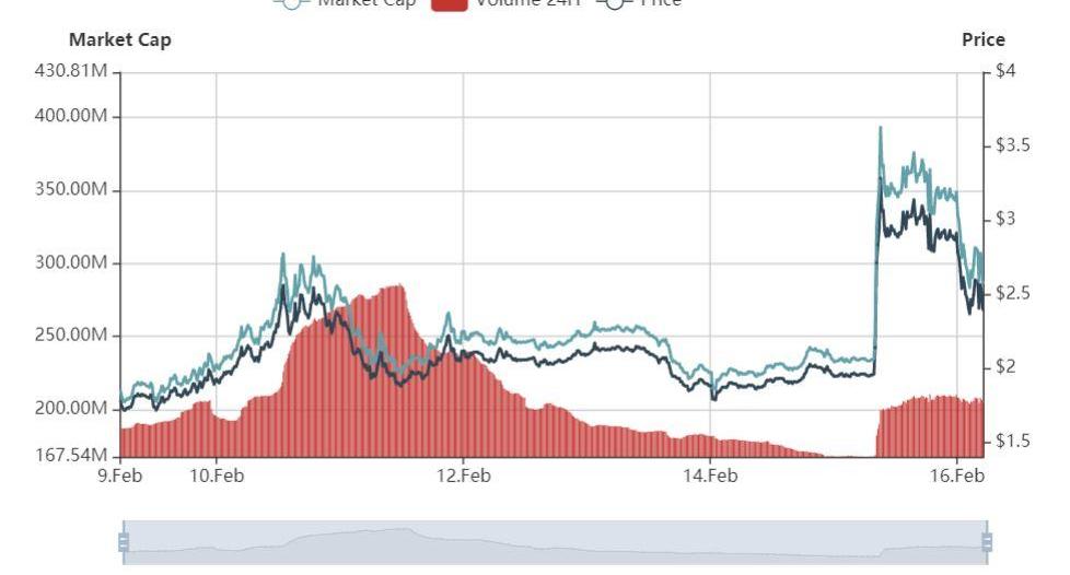 Tezos(当前排名10,当前价格3.13美元,周涨幅48.04%)