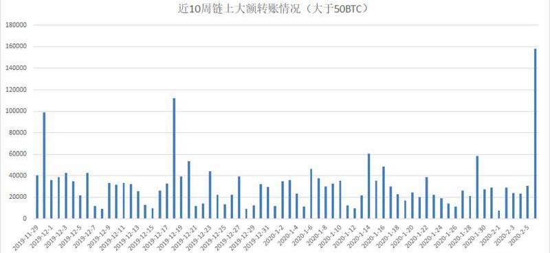 一般而言,较大的链上大额转账额在统计上是强烈看涨信号。这一数值越大,说明BTC的价值网络越活跃,根据梅特卡夫定律,这一网络的价值就越高,BTC后市就理应上涨。
