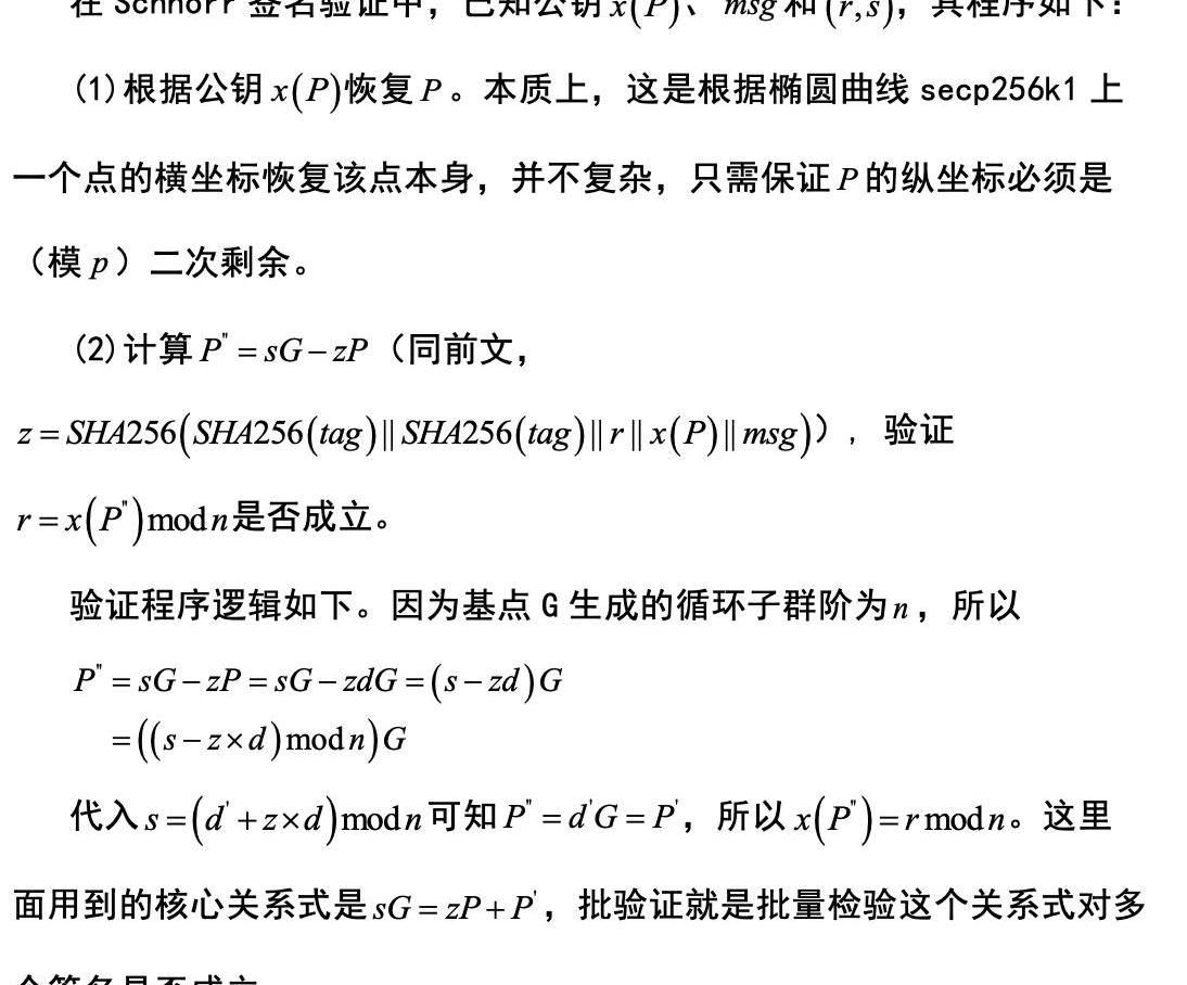 最后,Schnorr签名算法因为使用同样的椭圆曲线secp256k1和哈希函数SHA256,能兼容目前的比特币公私钥生成机制。