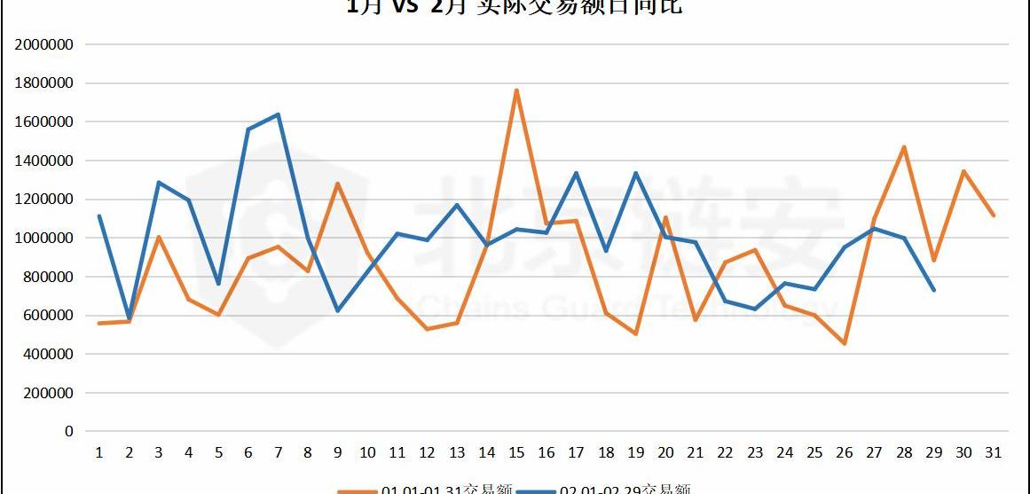 次上涨了9.10%,同样的,2月大额转账数相对1月的波动也相对较小。
