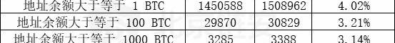 地址余额大于等于1000BTC的有3,388个
