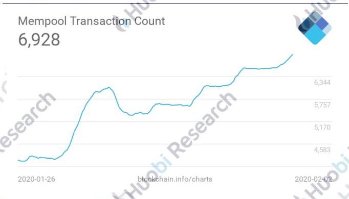 本周比特币平均未确认交易数上涨66.74%。截止2020年2月2日,比特币7天平均未确认交易数为6928,环比上涨66.74%。