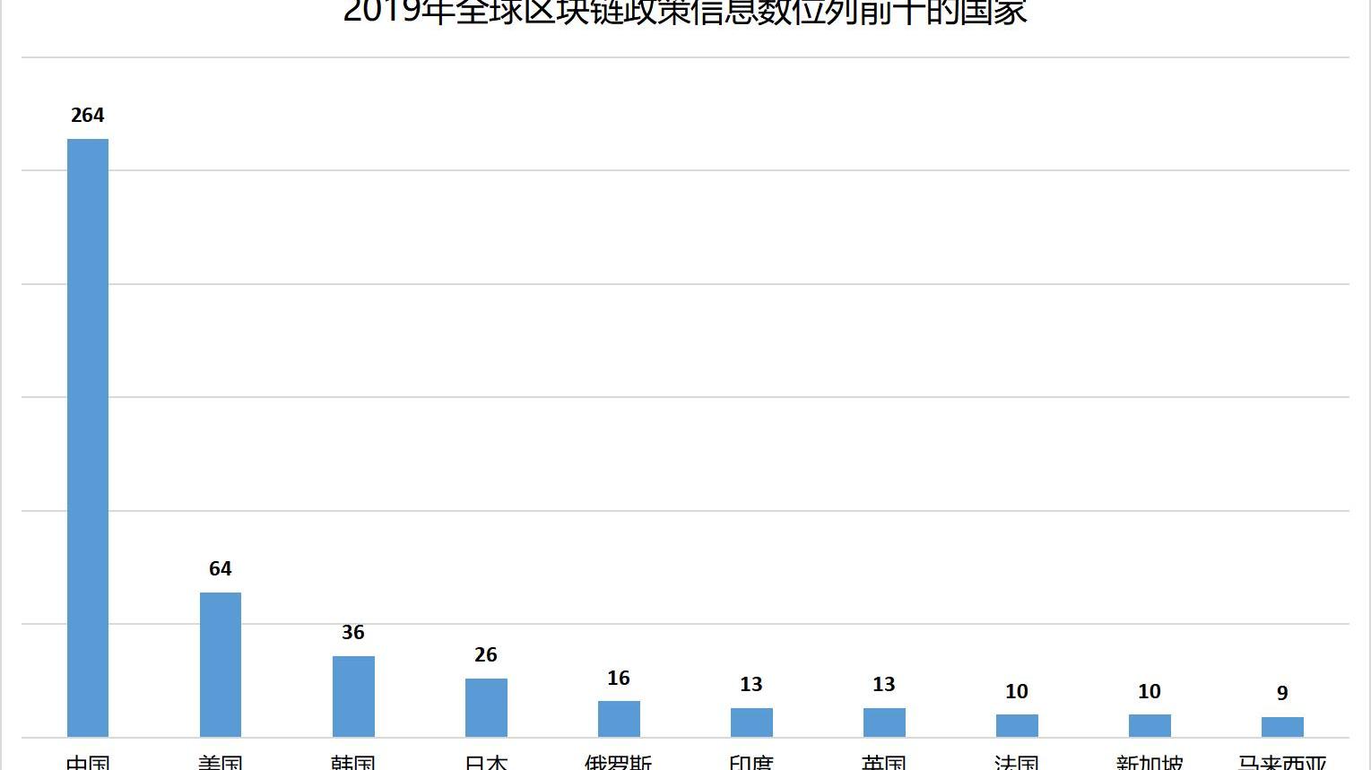 中国以264则区块链政策信息的数量,居2019年全球各国政策数之首。其中,又多以扶持为主,全年共有204则区块链扶持相关的政策信息,60则区块链监管相关的信息。