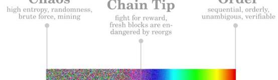 从某种意义上说,比特币“生长”在有序和混沌之间:寻找新区块是一个混沌的过程,其结果是一个非常有序的交易列表:比特币区块链,也称为账本。