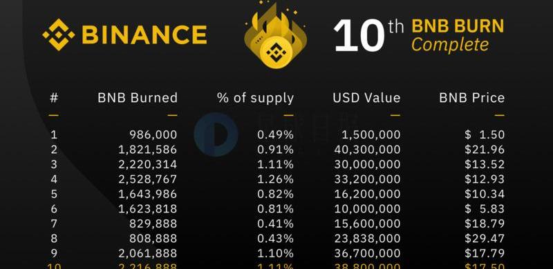 1月18日,币安官方宣布完成了2019年第四季度BNB销毁,根据币安公告显示,此次销毁了将近220万枚BNB,价值约3880万美元。