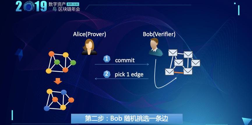 第二步,Bob看不见每一个顶点,但他会随机选择一条边让Alice来揭开纸片。
