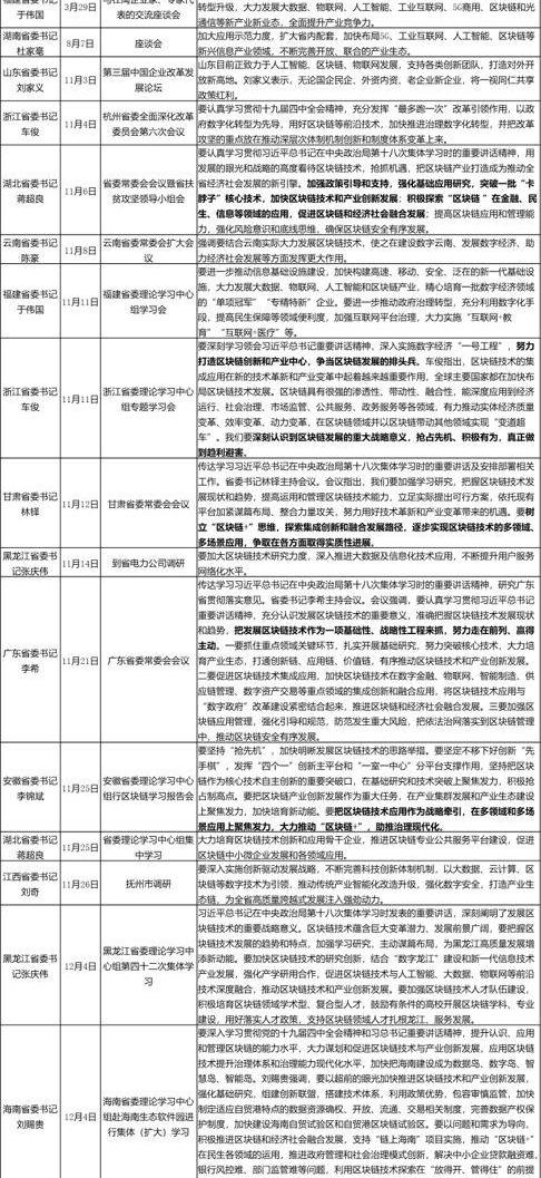 2019年1月份至今,全国已有十数位省委书记为区块链“发声”。尤其进入11月以来,包括山东、浙江、湖北、云南、福建、甘肃、黑龙江、安徽、广东、江西等地的省委书记在省委常委会、理论学习中心组专题学习会等场合中提及区块链。