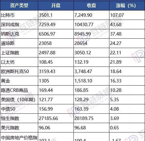 当然,全球各大类资产中,比特币是表现最好的,年度涨幅达到了107%。
