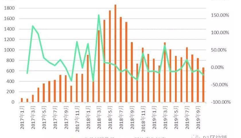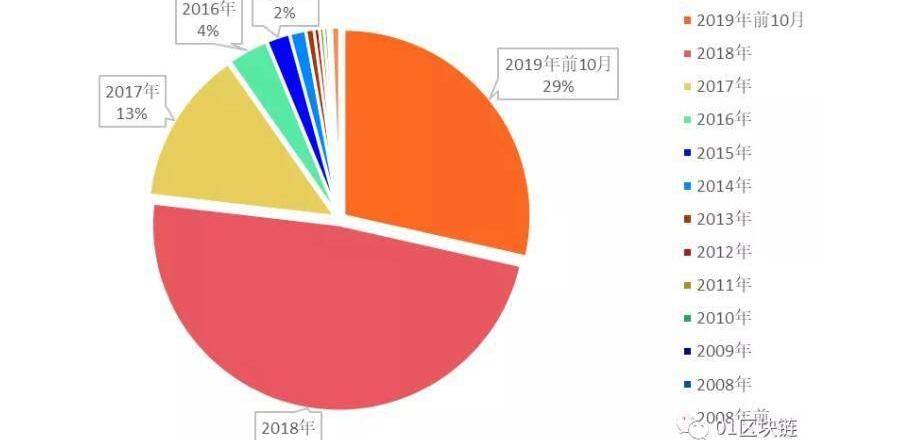 2019年前10月,中国市场新增区块链相关企业8895家,占比达到29%。但与2018年同期相比出现一定幅度的回落,同比下降约40%。