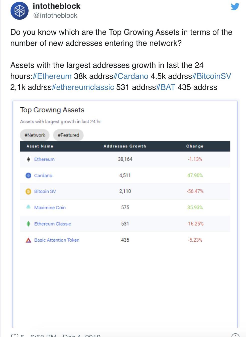 最近24小时内增长最快的资产:#以太坊38000个新地址#Cardano4500个新地址#BitcoinSV2100个新地址#ethereumclassic531个新地址#BAT435个新地址