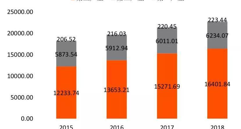 在经济下行的大环境下,广州市的经济发展始终保持稳步增长的趋势,2018年实现全地区地区生产总值22859.35亿元,较上年增长6.3%。三大产业也均实现不同程度的增长,第一、第二以及第三产业的增长率分别为2.5%、5.4%、6.6%。