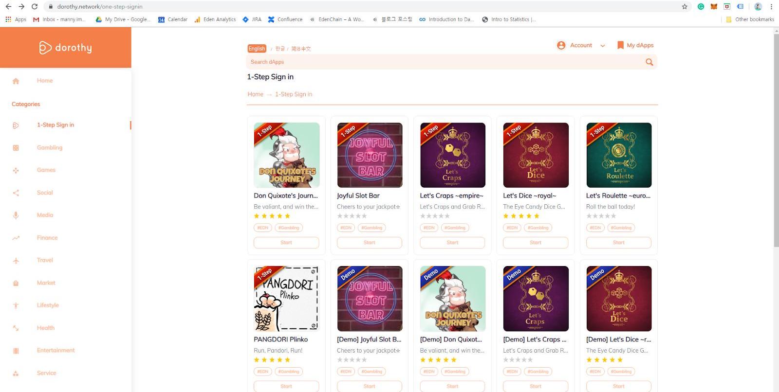 EdenChain与dApp公司NodeNum合作开发了许多dApp游戏,以展示EdenChain服务的各个方面。他们目前计划一起发布约12款游戏。现在登录Dorothy.Network,就可以体验这些有趣的游戏。