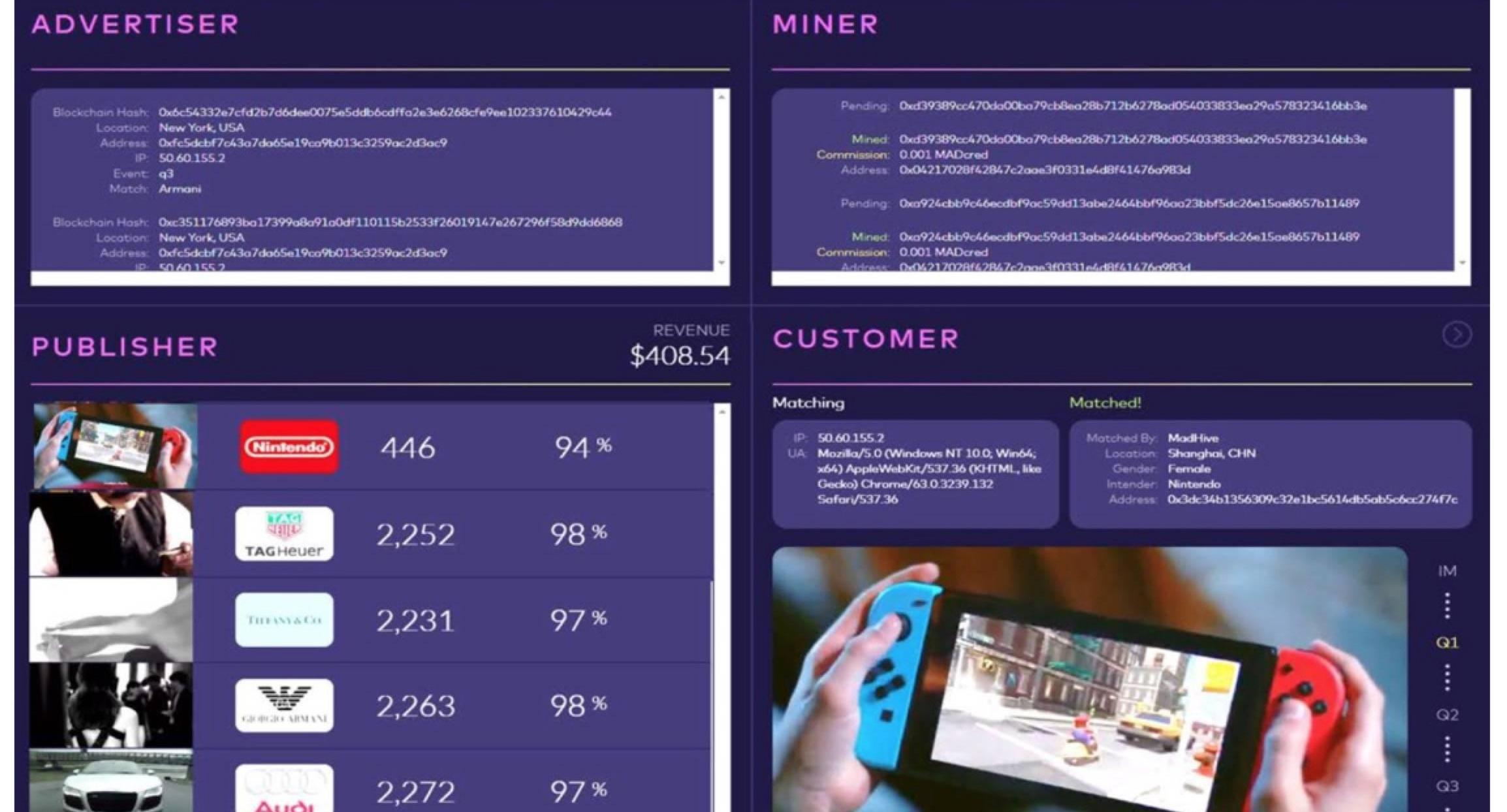我们这边有个广告,量还不错,怎么收费,协商可不可以自动化。有了区块链,我把所有广告的参数都列出来,有公共的评价机构、广告发布商、广告提供商,包括矿工、用户、个性化的广告就可以。这个也可以用智能合约,买家、卖家、评级、调查和支付综合在一个区块链当中。
