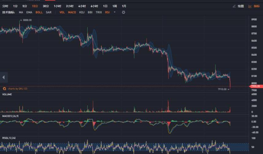 昨日BTC上探8200美元后回落,反弹力度很弱。今日16时开始小幅放量下行,日线RSI指标显示超卖,但日线还是呈现缩量下行的走势,短时待量能释放后会有所反弹。另消息面,需关注今晚“区块链第一股”嘉楠科技上市纳斯达克的表现,市场可能会有联动反应。