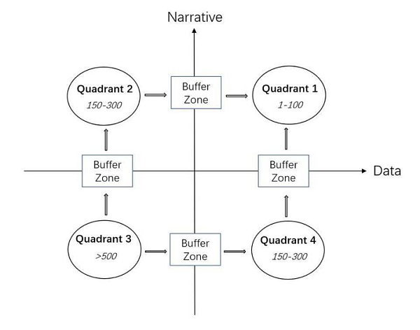 关于代币二级市场价格的预估,我们通常会以估值作为参考。NGC Ventures 董事总经理蔡彦给出了一个对DeFi进行估值的框架,以叙事和数据(叙事是指项目的理念和机制,数据则是项目的各种数据表现)两个维度对市面上的项目进行了划分,她指出,最容易赚钱的项目来自于 第 3 象限项目进入第 2 和第 4 象限 。象限 3的项目包括:新兴 项目、 垃圾 项目或 已经死掉 的项目,我们首先要做的显然是需要挖掘大量的新兴项目。
