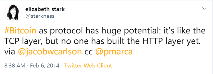 六年前的今天,我与一位朋友对比特币“一见钟情”,我最大的收获是,尽管这项技术具有改变游戏规则的潜力,但尚无人构建应用程序层。我立即在推特上发布了它: