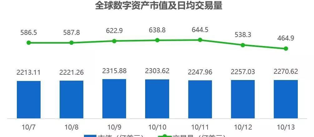 上周全球数字货币资产日均市值为?2261.35亿美元,上涨3.20%,日均交易量?583.39亿美元,上涨?20.56%。