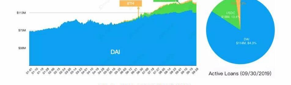 9月份借出资产总计为6,880万美元,环比8月份小幅增长4.4%;借入资产总计为1.99亿美元,环比8月份小幅缩减7.4%;未偿还贷款资产总计1.35亿美元,其中DAI包含1.14亿美元,占比84.3%,USDC有1,800万美元,占比13.4%。