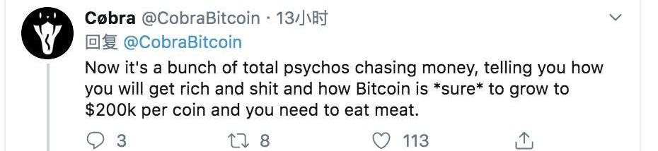 注:在加密货币社区,人称眼镜蛇的C?bra一直是一位备受争议的人物,他是非常早期的比特币参与者,也是与中本聪交流最多的人之一,在中本聪隐退后,C?bra接手了bitcoin.org以及bitcointalk.org的管理权限,另外,他还是r/bitcoin社区的管理者,而这位手握“重权”的匿名人物,还经常性地语出惊人,而在今天,他又将矛头指向了“喊单大V”。
